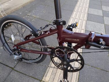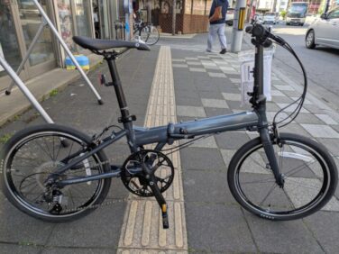 ダホンミドルグレードバイク。軽量(9.2キロ実測)そしてカスタム化できるフロント変速台座など買ってからが楽しみの一台です。走りも軽く、軽いので持ち運びも楽々です。展示はASUブルーです