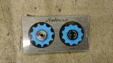 TRiPEAK(トライピーク)社は、これまであらゆるベアリングの製作を行ってきたプロフェッショナルブランド。身近なところではパソコンの HDD(ハードディスクドライブ)用のベアリングを開発し、自転車ではスラム純正品の開発を手がけ、ヨーロッパ各国を始め、アメリカ、オーストラリアにも 製品を供給している。SHIMANO11スピード用の「CERAMIC PULLEY(セラミック プーリー)」は、11スピード専用設計ならではの歯先形状を採用。スムーズさを約束する上下で異なるプーリーのデザインや、チェーンにやさしいレジン製の ボディ、駆動抵抗を軽減するセラミックベアリングの採用により、これまでにない優れた変速性能を発揮する。カラーバリーションは全6色あり、愛車のカラー に合わせたコーディネートも可能。