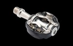 スピードプレイは最も技術的に進んだオンロー ド用ペダルを発明した後、最先端オフロードペダルの開発に着手しました。動力伝達が改善されたこの設計により、ペダリング中のライダーのエネルギーがロス することはありません。またオフロードペダルに共通するペダルキャッチと横方向の不安定さを改善するために、クリートとペダルの接合精度を改善しました。 もう一つはシザーの特許であるマイクロアジャストフロートテクノロジーです。クリートに直接ピボット機構を搭載することにより、シザーは10度のフロート 調整範囲を備えた唯一のオフロードペダルシステムとなりました。また、クリートがペダルにかみ合い易くするために、シザークリートの特徴であるファンネル ガイドを備えました。クリート前面にある翼型ファンネルガイドにより、ペダルキャッチのターゲットエリアを確保し、ルックダウンの必要がなく、より簡単に ペダルがかみ合いやすくなっています。そしてセラミックローラーカムを備えおり、それらが転がることによって泥や砂等が詰まることはありません。さらに、 安全対策としてペダルのスプリングラッチ機構の典型的な向きを前後逆に配置することで、不意にペダルを強く引っ張ってもペダルが脱落することを防ぎます。 シザーは複数年にも及ぶ研究開発の努力により誕生した、究極のビンディングペダルです。